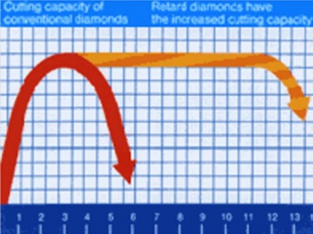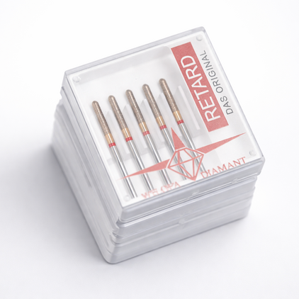 RETARD-Diamantinstrumente enthalten ein mehrlagiges Diamant-Depot. Bei längerem, intensivem Gebrauch werden abgenutzte Diamantkörner durch neue ersetzt. Damit verfolgt der RETARD erstmalig das Haifisch-Prinzip:
